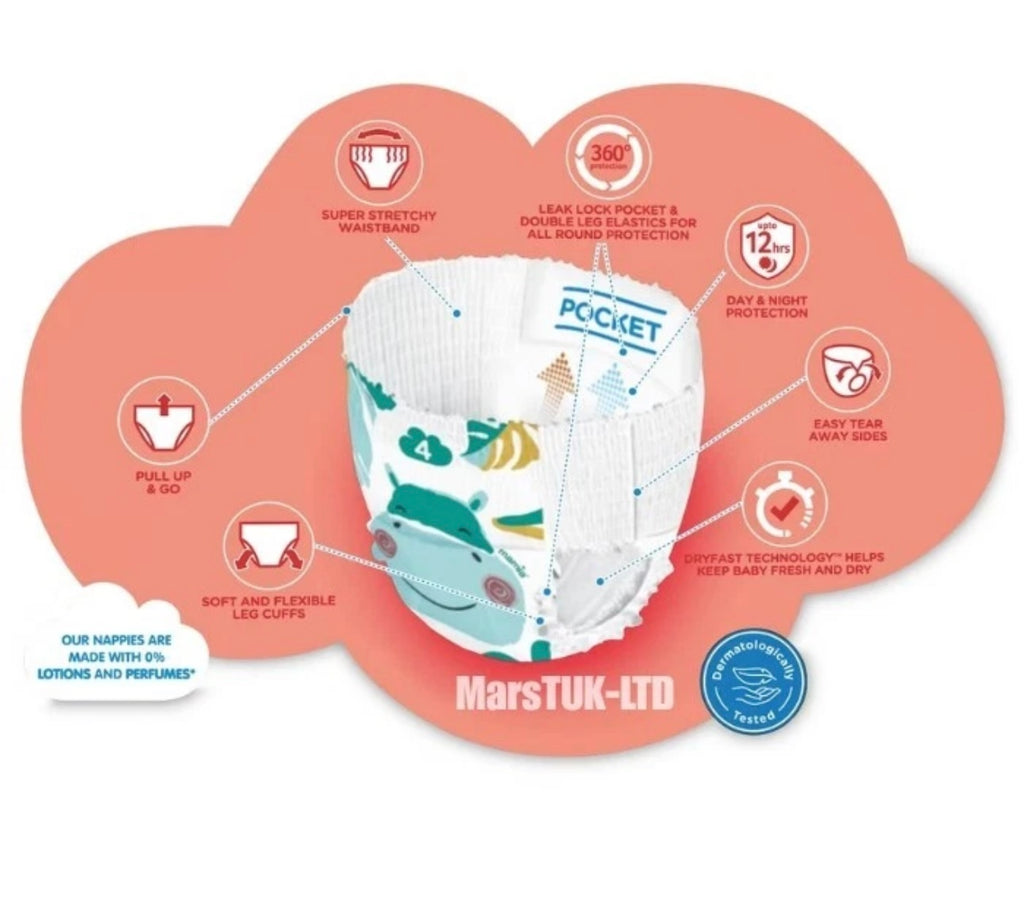 Mamia Ultra-fit Baby Nappies, Size 6 Toddler nappy pants Day and Night Leak Free.